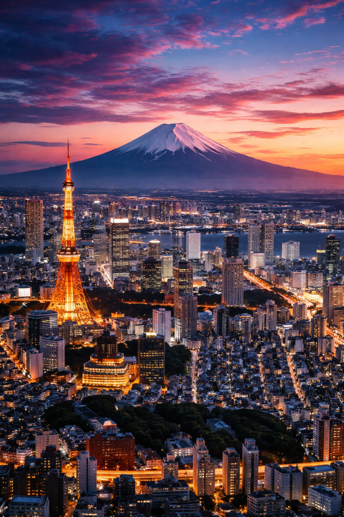 Alt text: Tokyo skyline Japan tours